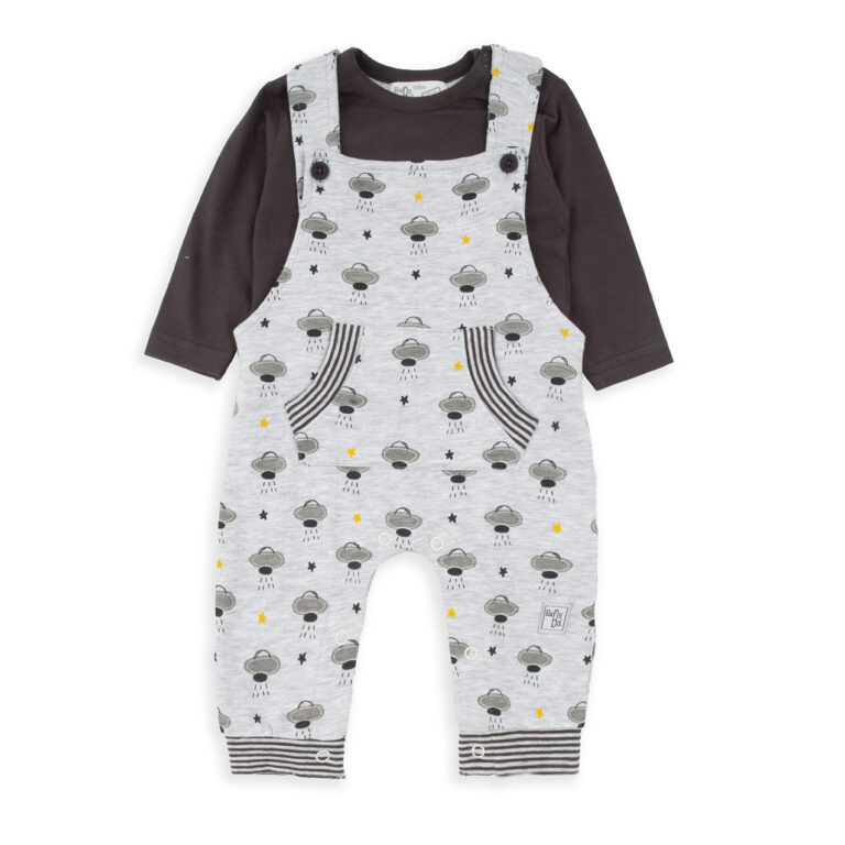 Βρεφικό σετ σαλοπέτα με μπλούζα μακρυμάνικη, γκρι με σχέδια