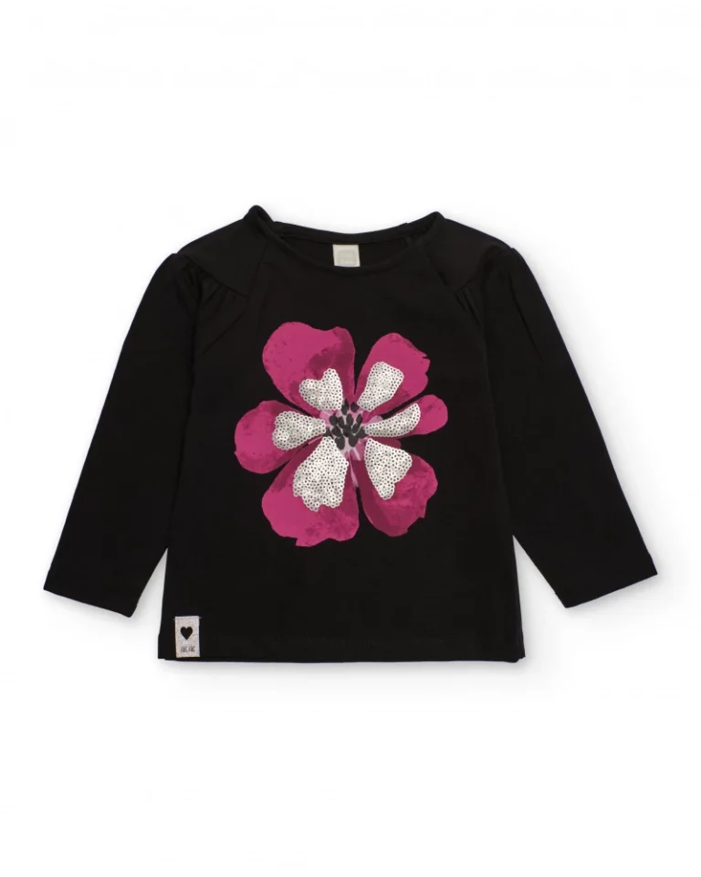 Μαύρη Μπλούζα με Ροζ Λουλούδι – TUC TUC