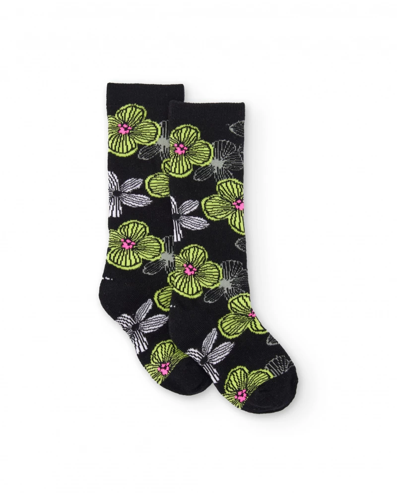 Παιδικές κάλτσες μαύρες με λουλούδια TUC TUC