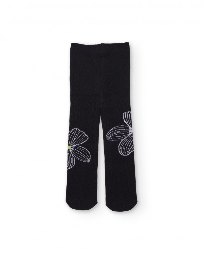 Παιδικές κάλτσες μαύρες με λουλούδια TUC TUC