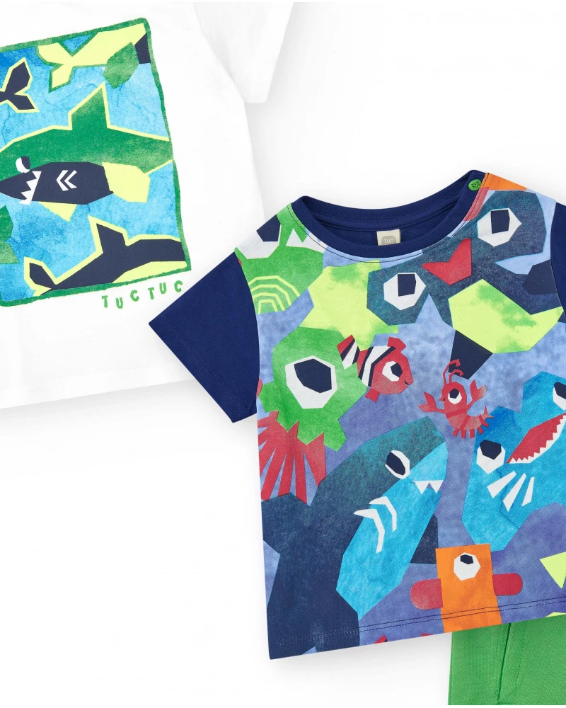 Αγορίστικο Σετ 3 Τεμαχίων με 2 Μπλουζάκια με Θαλάσσια Σχέδια & Σορτσάκι TUC TUC