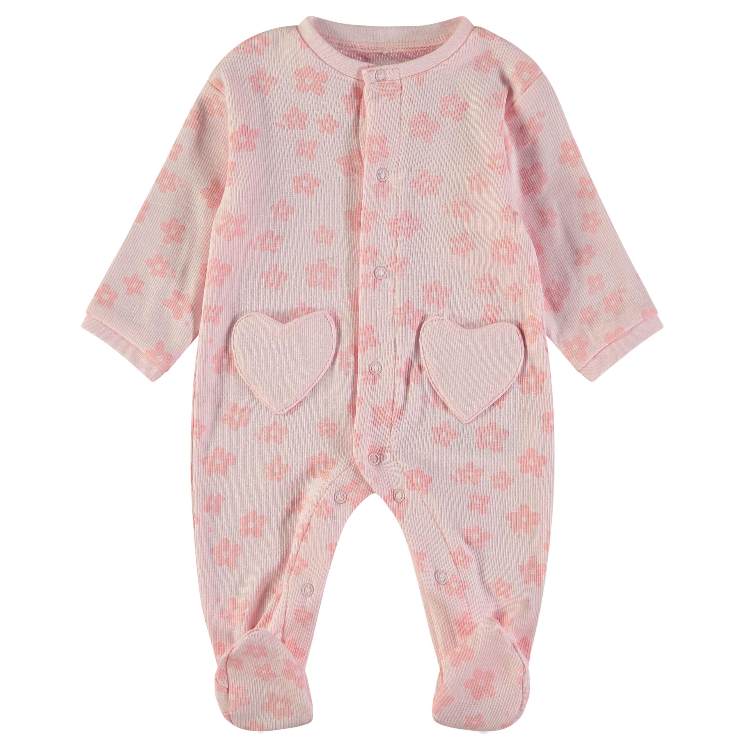 Βρεφικό Ολόσωμο Φορμάκι Ροζ με Λουλούδια και Καρδιές