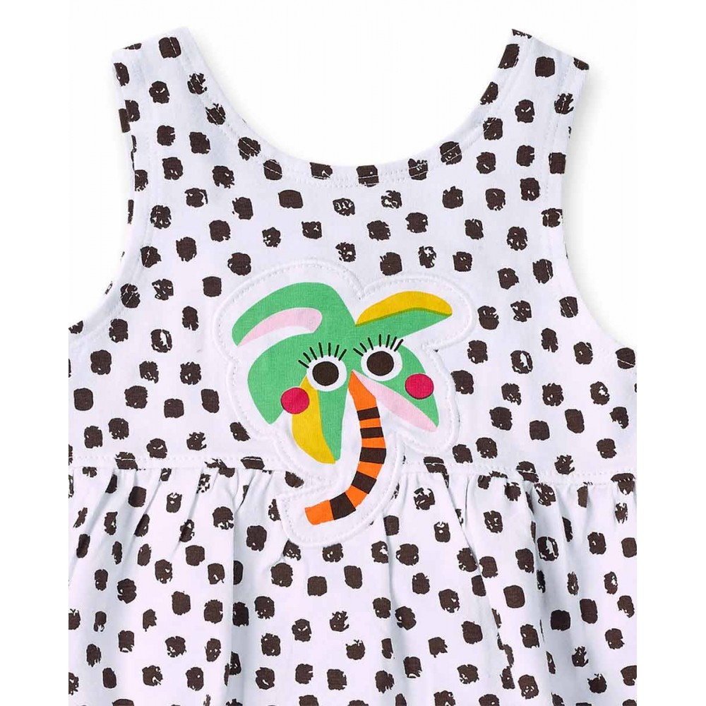 Ένα καλοκαιρινό φορεματάκι γεμάτο χαρακτήρα! Το λευκό ύφασμα στολίζεται με μαύρα πουά και στο κέντρο δεσπόζει ένας πολύχρωμος φοίνικας με παιχνιδιάρικα ματάκια 🌴🧡 Ιδανικό για κάθε μέρα, με ανάλαφρη εφαρμογή και στυλ που κλέβει καρδιές!