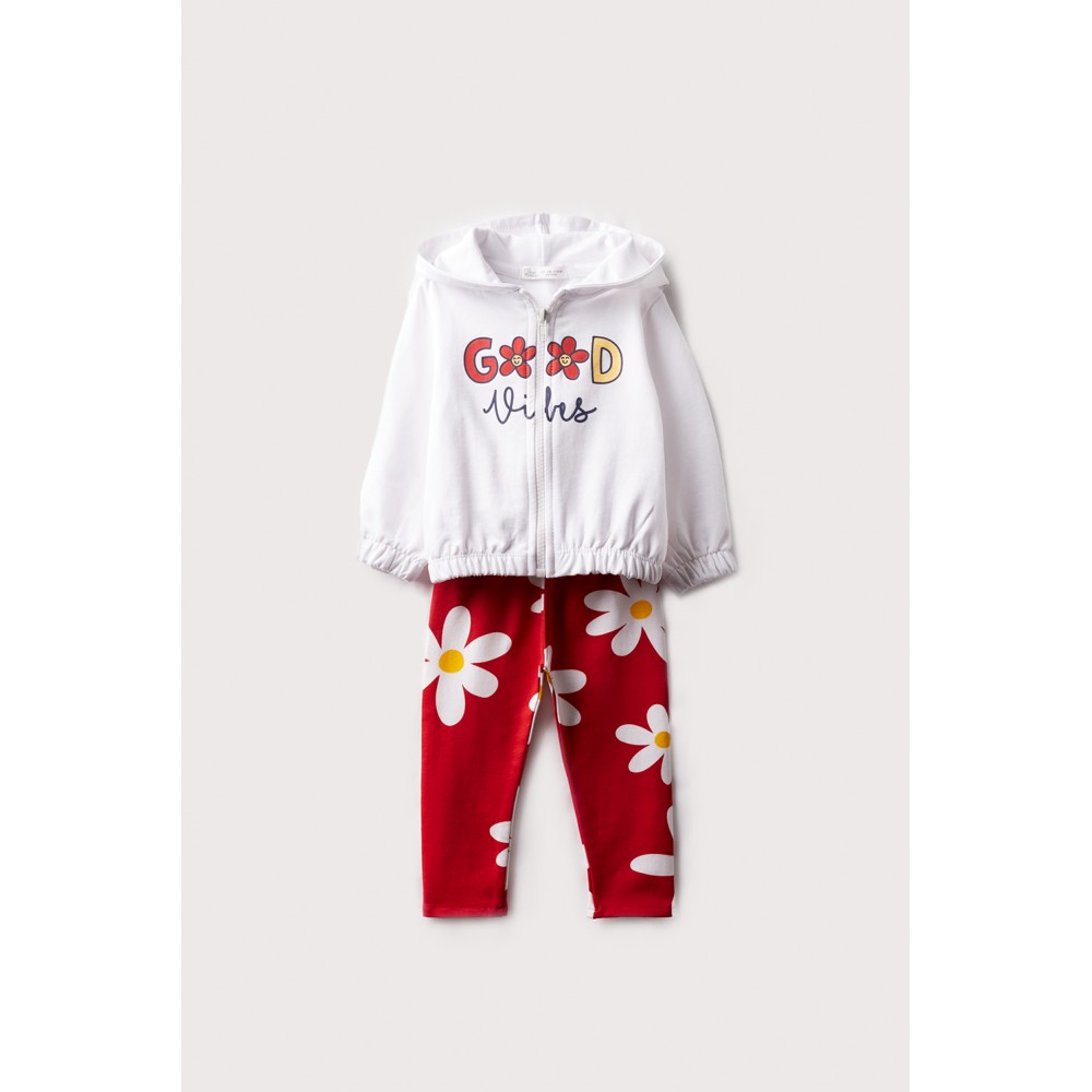 Σετ STREET MONKEY με ζακέτα “Good Vibes” και κόκκινο κολάν με μαργαρίτες