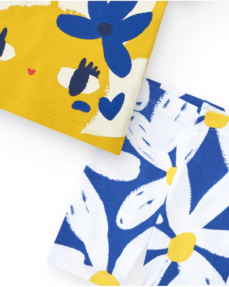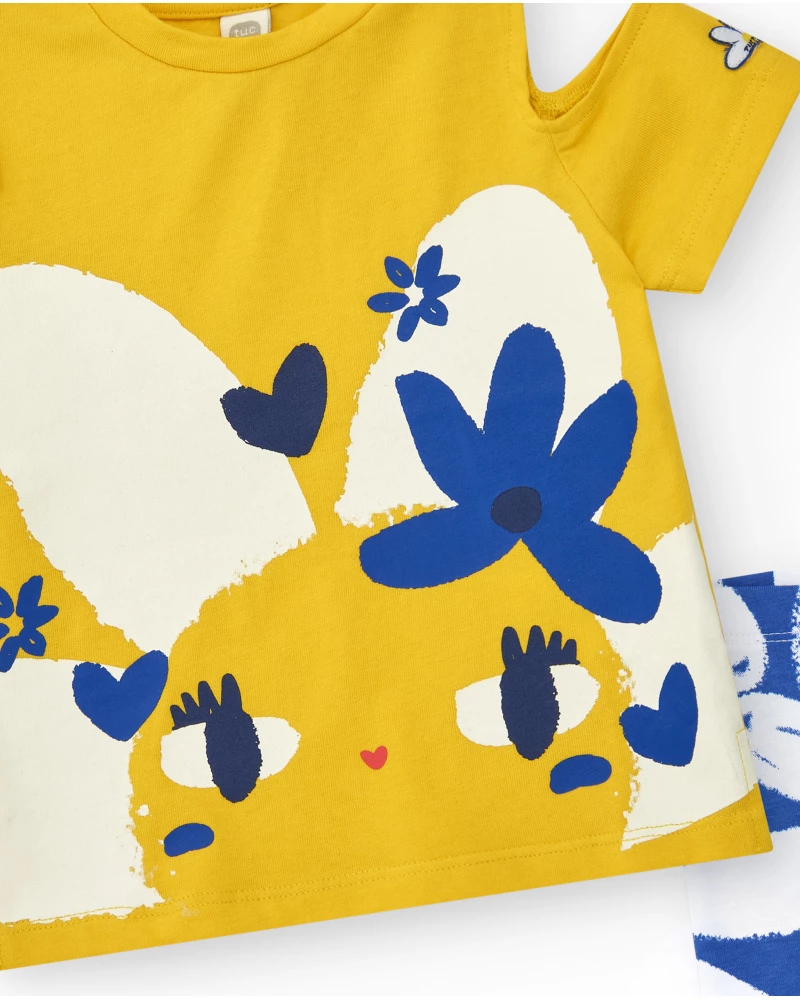 Κοριτσίστικο σετ μπλούζα κίτρινη με λουλούδια και μπλε κολάν TUC TUC