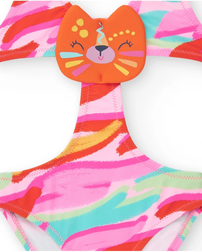 Απογειώστε το καλοκαιρινό στυλ με αυτό το υπέροχο παιδικό τρικίνι! Με χαρούμενο πολύχρωμο print και λατρεμένο σχέδιο γατούλας στο κέντρο, αυτό το μαγιό είναι ό,τι πιο γλυκό για μικρές κολυμβήτριες. Το ενιαίο σχέδιο του τρικινιού προσφέρει άνεση και στυλ, ενώ το απαλό ύφασμα εξασφαλίζει άψογη εφαρμογή και ελευθερία κινήσεων σε κάθε παιχνίδι στη θάλασσα ή στην πισίνα.