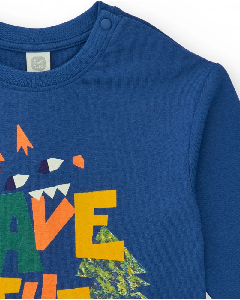 Μια μπλε μπλούζα με μακρύ μανίκι που ξεχωρίζει για το έντονο print “Save the Earth” σε φωτεινά χρώματα. Ένα κομμάτι που συνδυάζει στυλ με ένα όμορφο μήνυμα, ιδανικό για μικρούς εξερευνητές που αγαπούν τη φύση. Μαλακή και άνετη, είναι τέλεια για καθημερινό ντύσιμο με χρώμα και νόημα. Δημιουργία γεμάτη φαντασία από την TUC TUC.