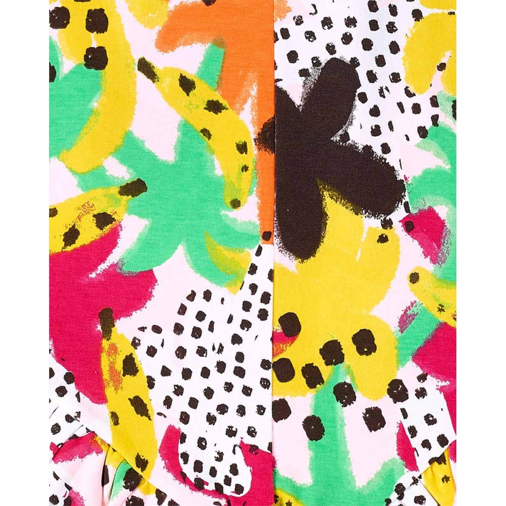Ένα ζωηρό, καλοκαιρινό ολόσωμο σορτσάκι που ξεχωρίζει! Με παιχνιδιάρικο print από μπανάνες και τροπικά φύλλα σε έντονα χρώματα, αυτό το κομμάτι είναι η απόλυτη επιλογή για κάθε κορίτσι που αγαπάει το χρώμα και την άνεση! Οι τιράντες και τα φρου-φρου στο τελείωμα προσθέτουν μια έξτρα νότα γλύκας 💛 Ιδανικό για βόλτες, παιχνίδι και κάθε χαρούμενη στιγμή του καλοκαιριού.