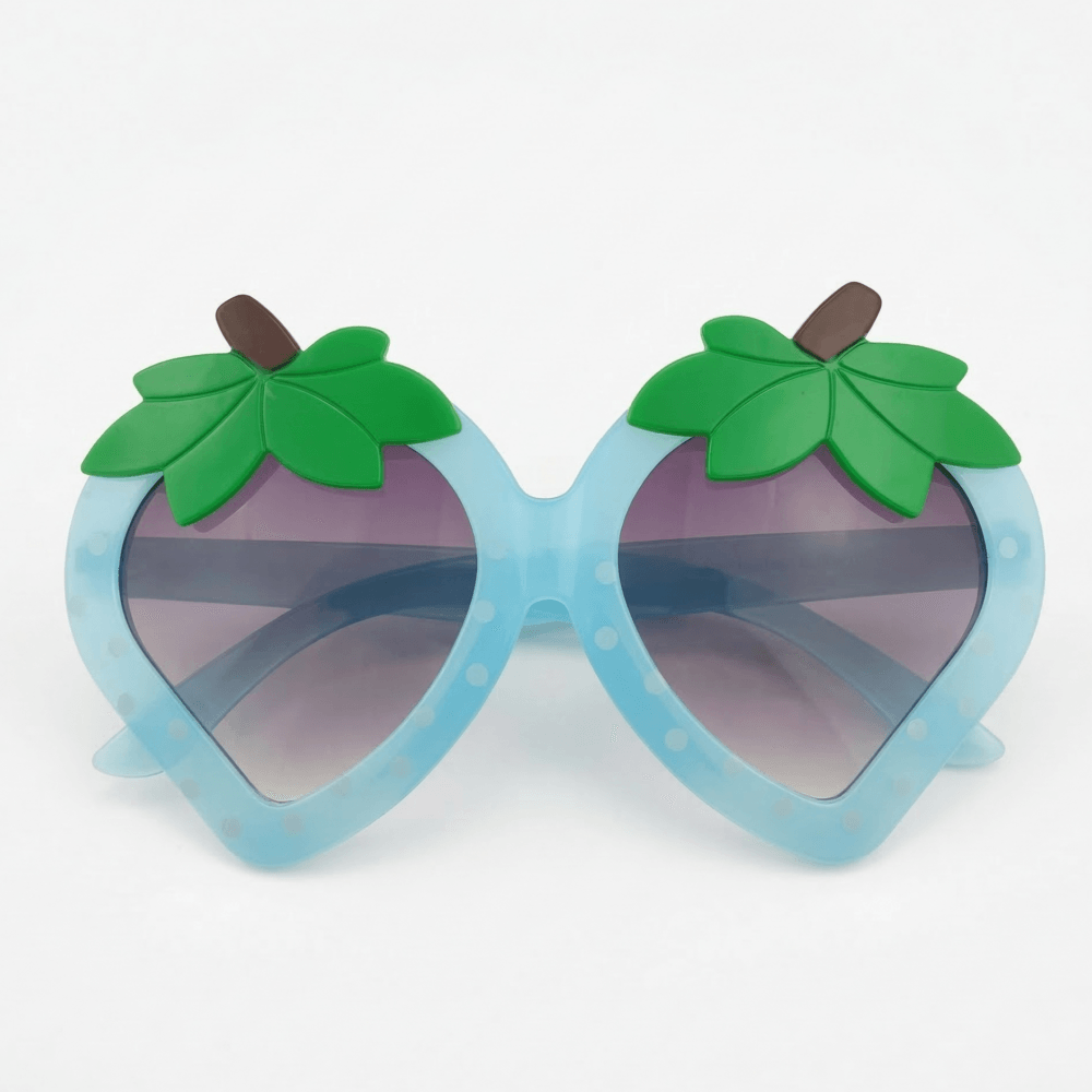 Παιδικά γυαλιά ηλίου με ιδιαίτερο σχέδιο φράουλα σε υπέροχη γαλάζια απόχρωση, ιδανικά για να χαρίσουν ξεχωριστό στυλ στις καλοκαιρινές εμφανίσεις. Με παιχνιδιάρικο σχήμα, διακριτικές πουά λεπτομέρειες και πράσινα φύλλα στο επάνω μέρος, αποτελούν ένα αξεσουάρ που συνδυάζει χρώμα, φαντασία και χαρούμενη διάθεση. Τέλεια για βόλτες, διακοπές και φωτογραφίες γεμάτες καλοκαιρινό χαρακτήρα.