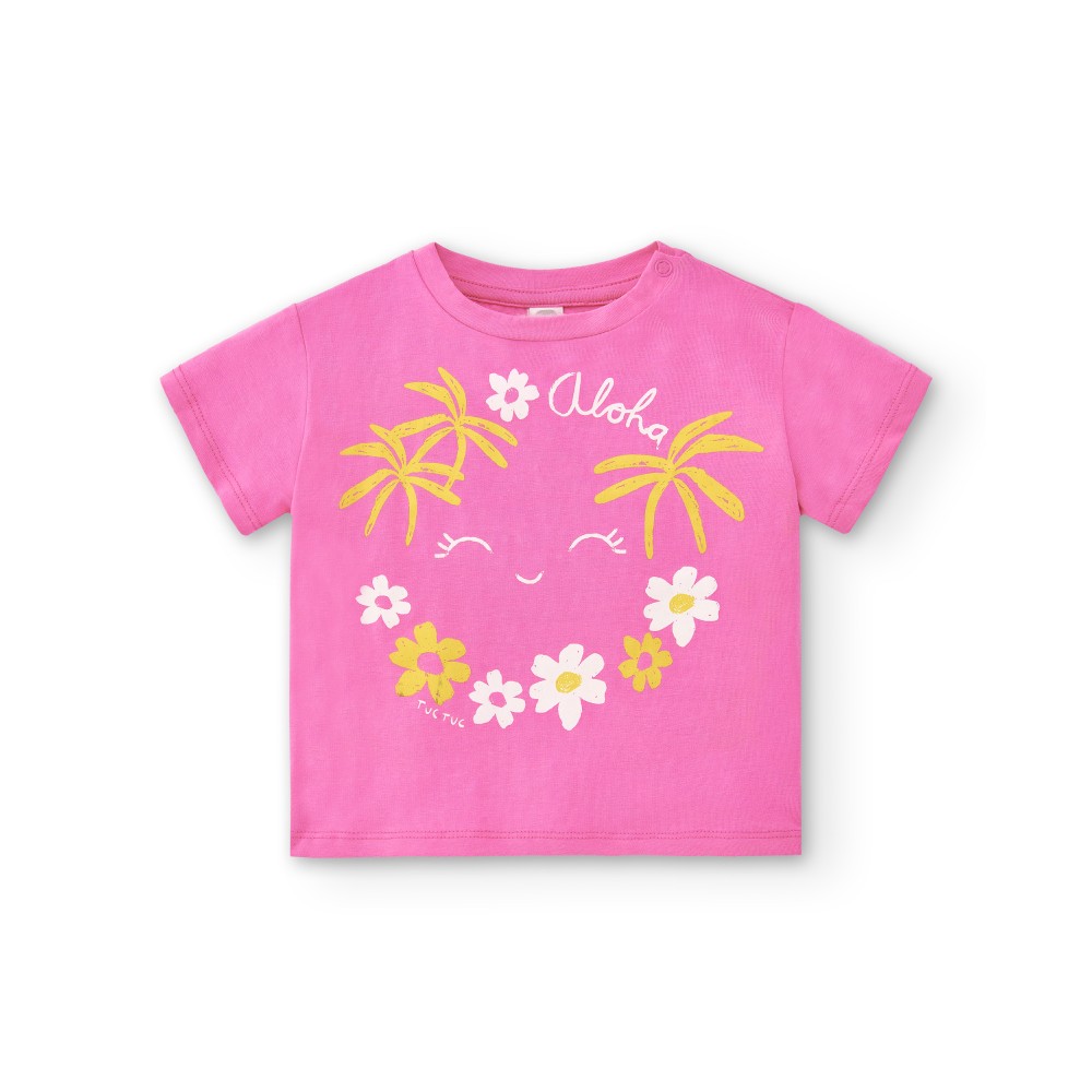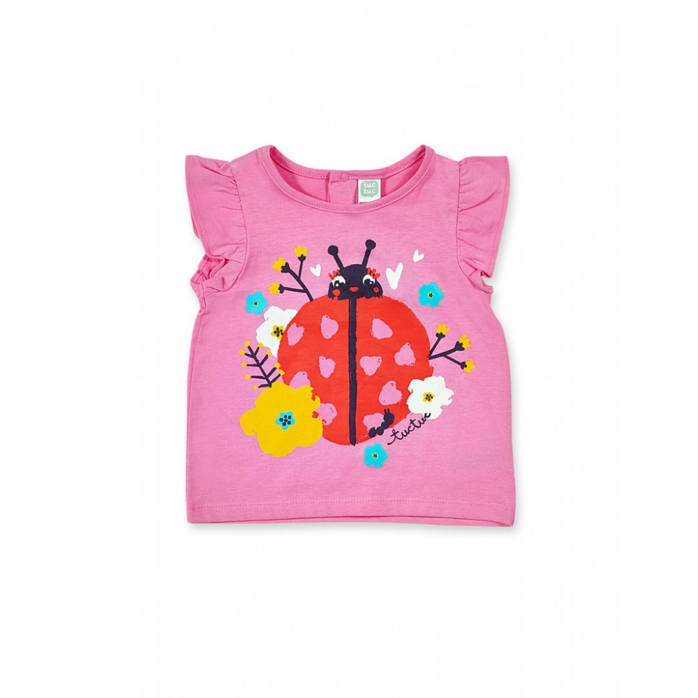 Ροζ παιδική μπλούζα με βολάν και πασχαλίτσα Tuc Tuc