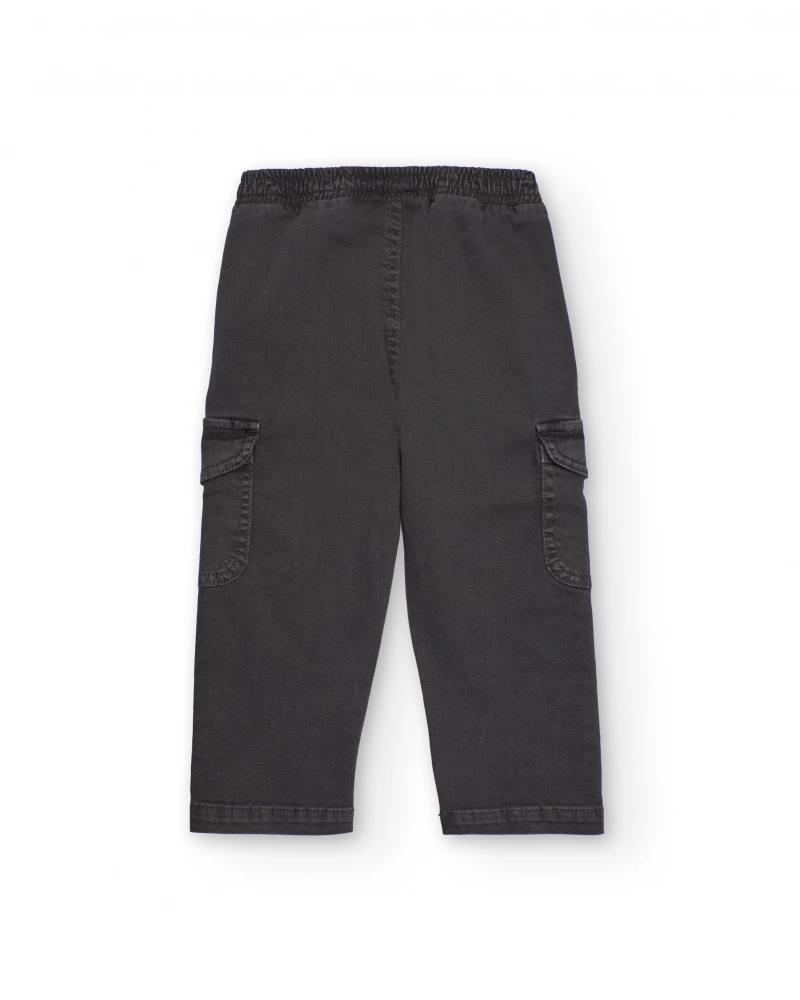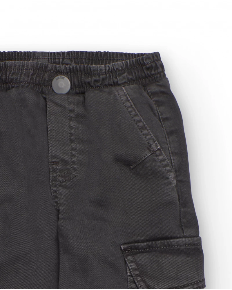 Παιδικό παντελόνι cargo TUC TUC σε γκρι χρώμα, με άνετη εφαρμογή και πρακτικές τσέπες στο πλάι. Διαθέτει λάστιχο στη μέση για καλύτερη εφαρμογή και ελευθερία κινήσεων, προσφέροντας άνεση όλη μέρα. Ένα στιλάτο και λειτουργικό κομμάτι, ιδανικό για το καθημερινό ντύσιμο των παιδιών.