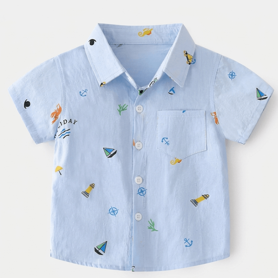 Παιδικό Πουκάμισο Σιέλ με Θαλασσινά Σχέδια