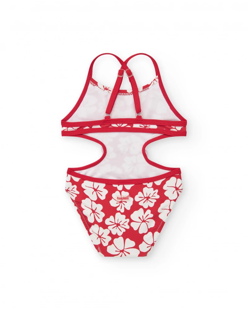 Παιδικό Τρικίνι για Κορίτσια σε Κόκκινο Χρώμα με Λευκό Λουλουδάτο Σχέδιο TUC TUC