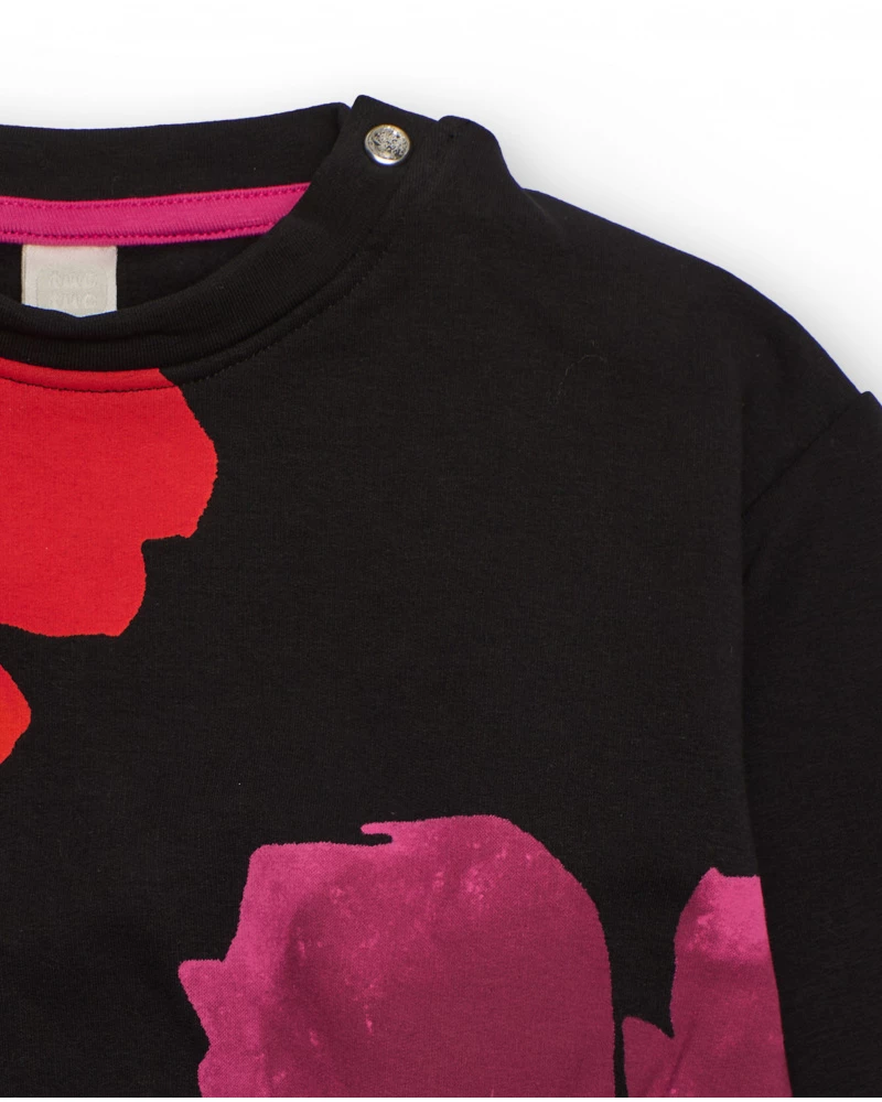 Η TUC TUC μπλούζα φούτερ σε μαύρη απόχρωση ξεχωρίζει με τα εντυπωσιακά μεγάλα λουλούδια σε κόκκινους και φούξια τόνους, που χαρίζουν ζωντάνια και στυλ. Με απαλή υφή και άνετη εφαρμογή, είναι ιδανική για καθημερινές εμφανίσεις αλλά και πιο ιδιαίτερες στιγμές. Ένα κομμάτι που συνδυάζει κομψότητα και παιχνιδιάρικη διάθεση, δίνοντας στο παιδικό ντύσιμο μια ξεχωριστή πινελιά. 🌸