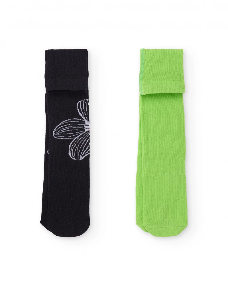 Σετ 2 παιδικά καλσόν μαύρο με λουλούδι και πράσινο TUC TUC