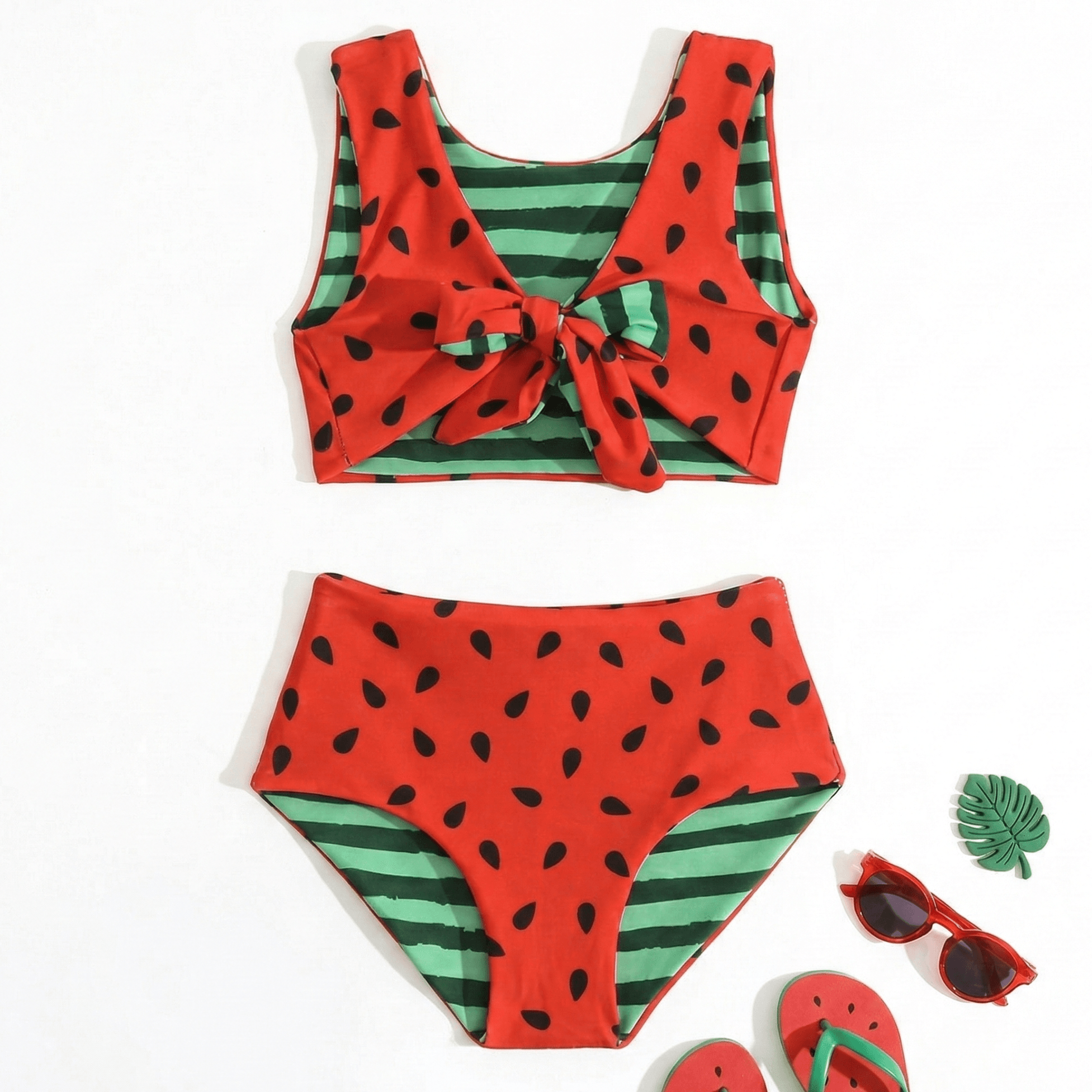 Παιδικό Μαγιό Σετ Μπικίνι Καρπούζι Διπλής Όψης με Φιόγκο