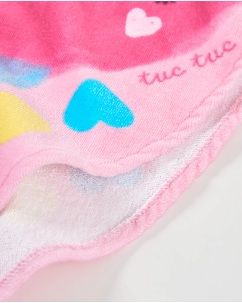 Λαχταριστό παιδικό πόντσο TUC TUC με χαρούμενο σχέδιο παγωτού, ιδανικό για τη θάλασσα, την πισίνα ή το μπάνιο. Με απαλή υφή και ξεχωριστή κουκούλα που αγκαλιάζει τρυφερά το κεφαλάκι, προσφέρει άνεση και ζεστασιά σε κάθε μικρό παιδί.
