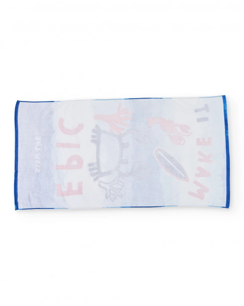 Μια εντυπωσιακή πετσέτα θαλάσσης της TUC TUC που αποπνέει καλοκαιρινή ενέργεια και ζωντανά χρώματα. Με παιχνιδιάρικο μοτίβο καβουριού, αστακού και surf board σε μπλε αποχρώσεις του ωκεανού, δίνει στο παιδί μια χαρούμενη και φωτεινή διάθεση κάθε φορά που τη χρησιμοποιεί. Η απαλή υφή και το βαμβακερό ύφασμα απορροφούν γρήγορα την υγρασία, ενώ η one size διάσταση την κάνει κατάλληλη για όλες τις ηλικίες. Ιδανική για θάλασσα, πισίνα και καθημερινή χρήση.