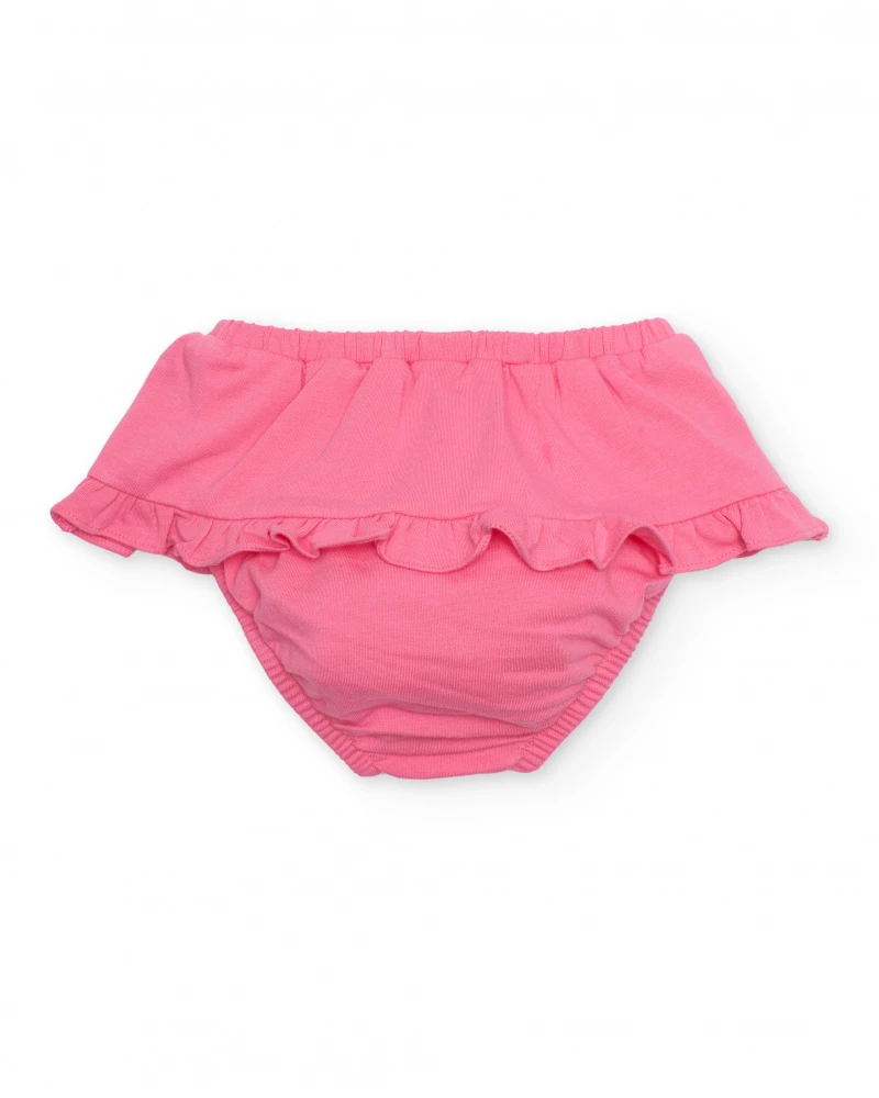 Γλυκό καλοκαιρινό σετ της TUC TUC, με λευκό μπλουζάκι και χαριτωμένο παγωτό σε ζωηρά χρώματα, συνδυασμένο με ροζ φουφουλίτσα με βολάν που προσθέτει παιχνιδιάρικη κίνηση. Απαλό και άνετο σύνολο, ιδανικό για ζεστές μέρες και χαρούμενες εμφανίσεις.