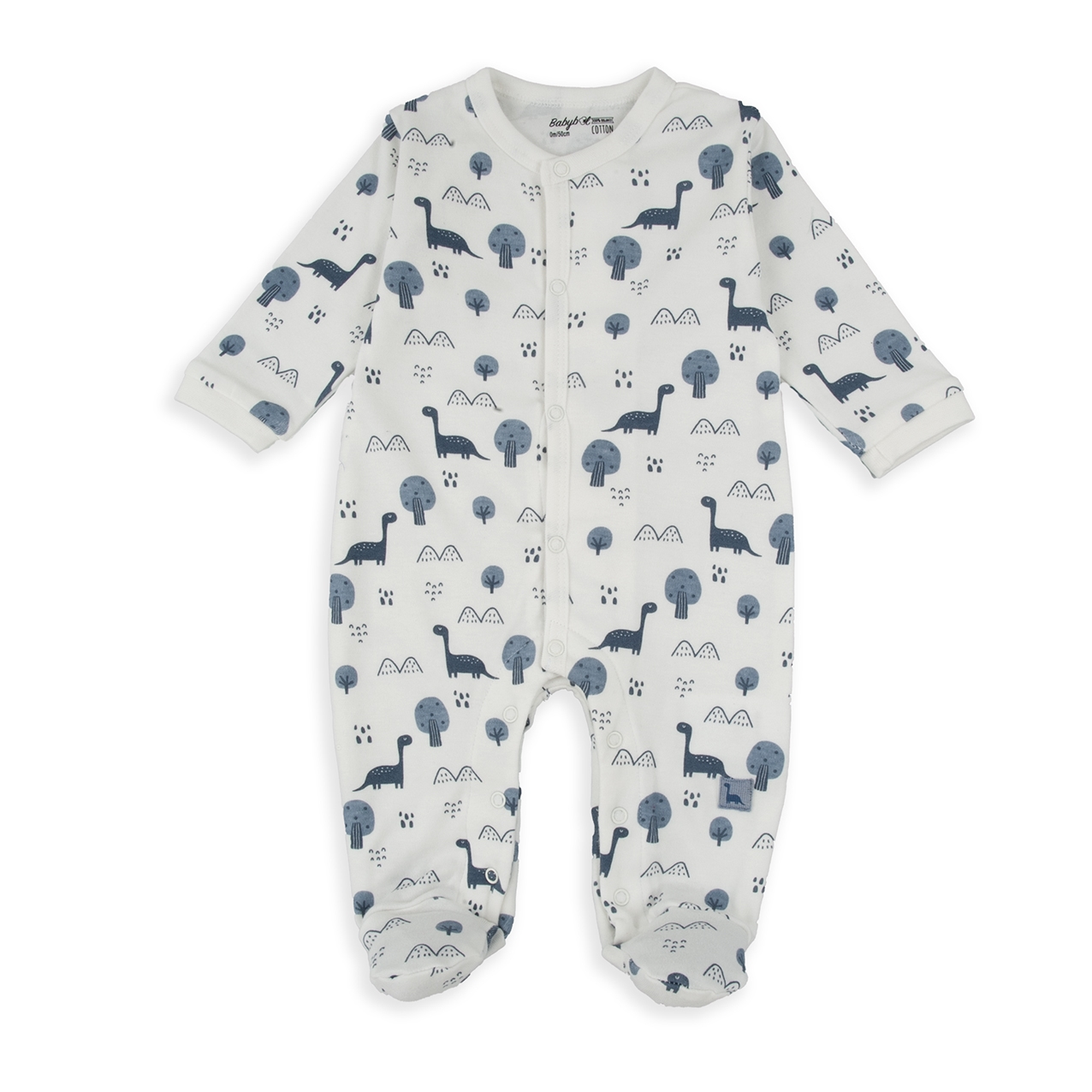 Βρεφικό φορμάκι σε απαλό μπλε χρώμα με χαριτωμένο μοτίβο δεινοσαυράκια, ιδανικό για αγόρια και κορίτσια. Διαθέτει κουμπάκια σε όλο το μήκος για εύκολη αλλαγή, ενώ τα μπατζάκια έχουν έξυπνο σχέδιο που επιτρέπει να φοριούνται ανοιχτά αφήνοντας τα ποδαράκια ελεύθερα ή να κλείνουν για περισσότερη ζεστασιά. Κατασκευασμένο από απαλό βαμβάκι, είναι φιλικό προς το δερματάκι του μωρού και εξασφαλίζει άνεση όλη μέρα. Μία πρακτική και χαριτωμένη επιλογή για το μωράκι σας!